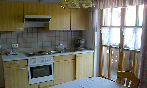 Diese Wohnung ist von der Größe und Ausstattung sehr ähnlich wie im Gästehaus. Sie hat ebenfalls 2 Schlafzimmer für je 2 Personen und einen stillvollen, ländlichen Wohnraum. Dieser bietet Ihnen eine gut ausgestattete Küche, einem Aufenthaltsraum mit Rundcouch und TV. Das Bad ist mit WC, Dusche und Badewanne ausgestattet. Zudem hat auch diese Wohnung einen Balkon.
